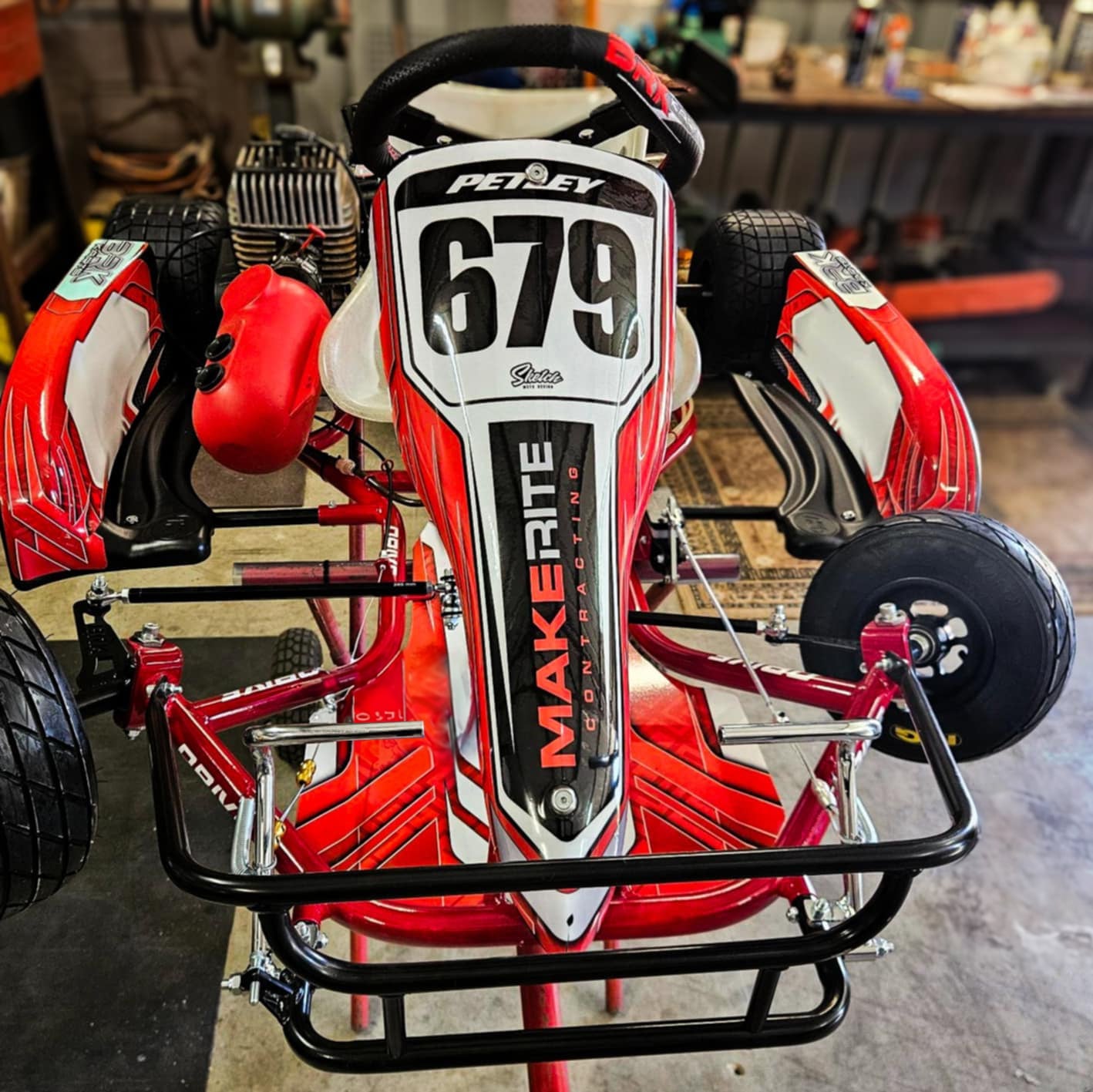 With a custom crafted front end, this customer requested graphics on their custom front to tie in with the rest of their kart.